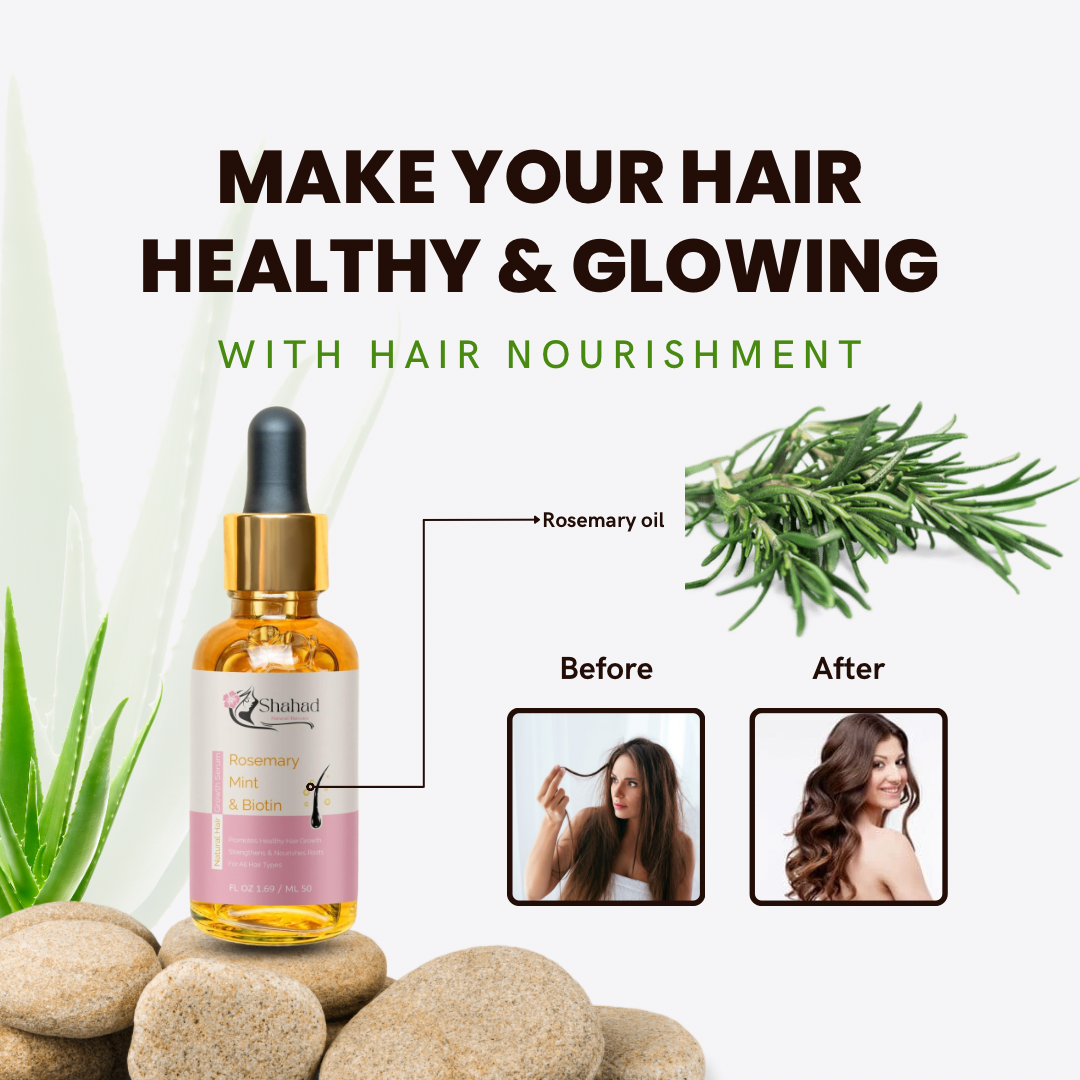 Transform your hair with our powerful serum featuring rosemary oil and biotin!